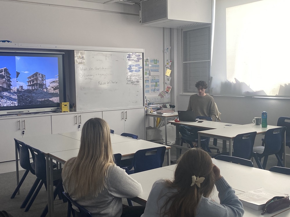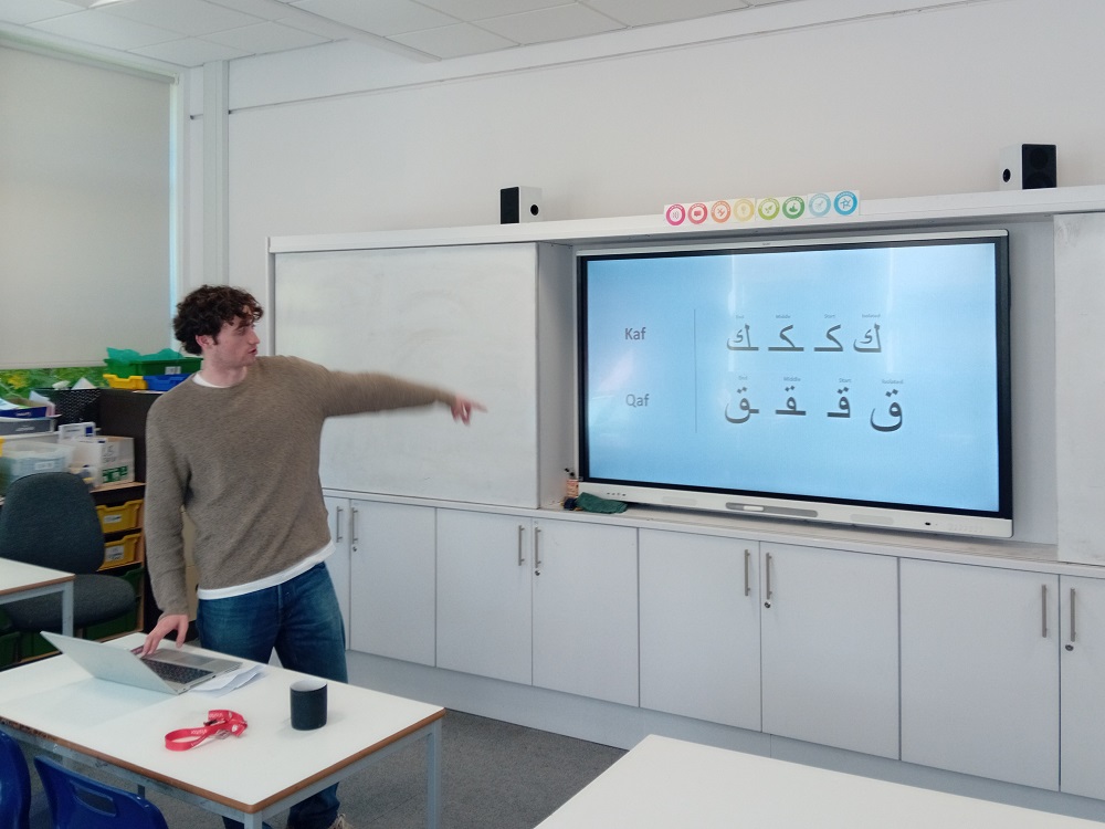 Former QEHS student Sorley took time out from his studies in Arabic and Islamic Studies at Oxford University to talk to our 6th form students. Having lived in Jordan and travelled extensively in the Middle East, Sorley spoke to our politics students about his experiences. Year 12 and Y13 students were then treated to a taster session in Modern Standard Arabic, where they learnt about the structure of the language and how to hold basic conversations.