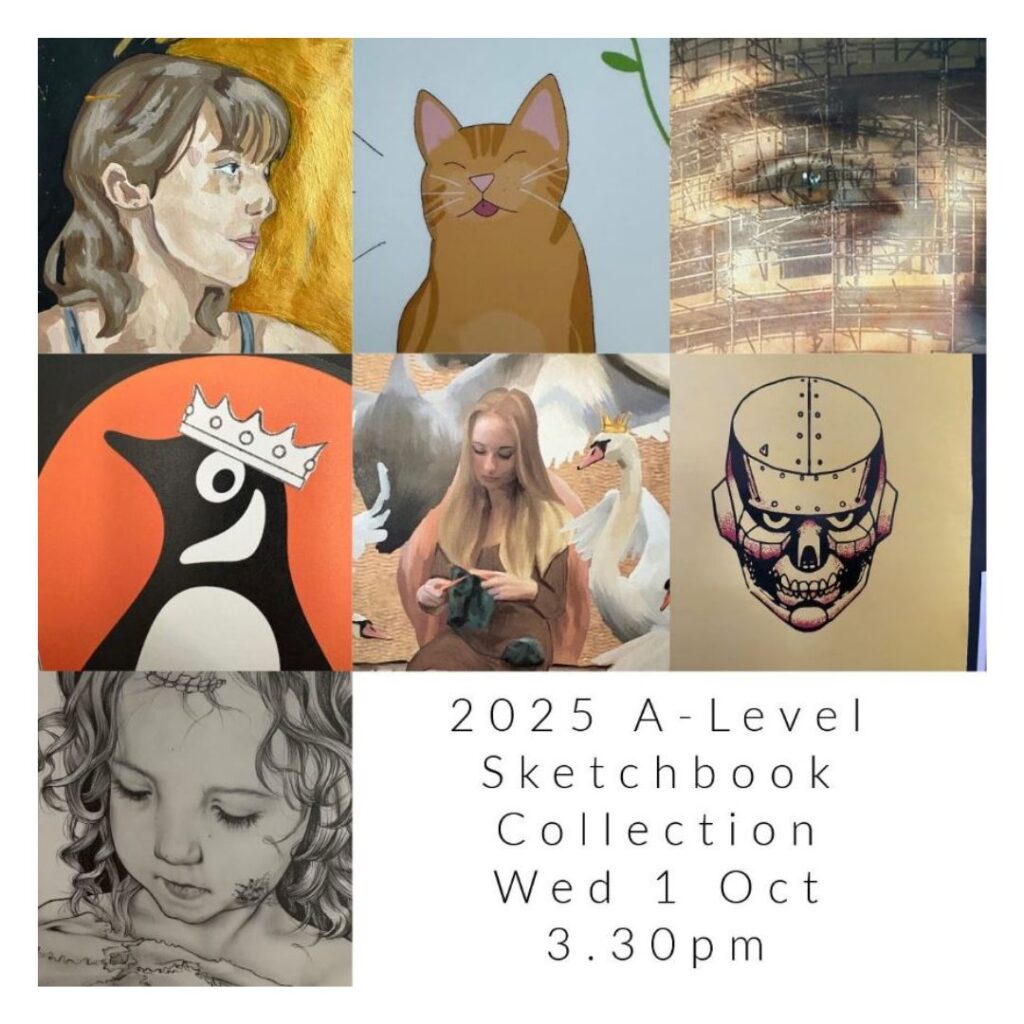 You can pick up your work (Sketchbooks and supporting work) on Wednesday 1st October 3.30-4.30pm.