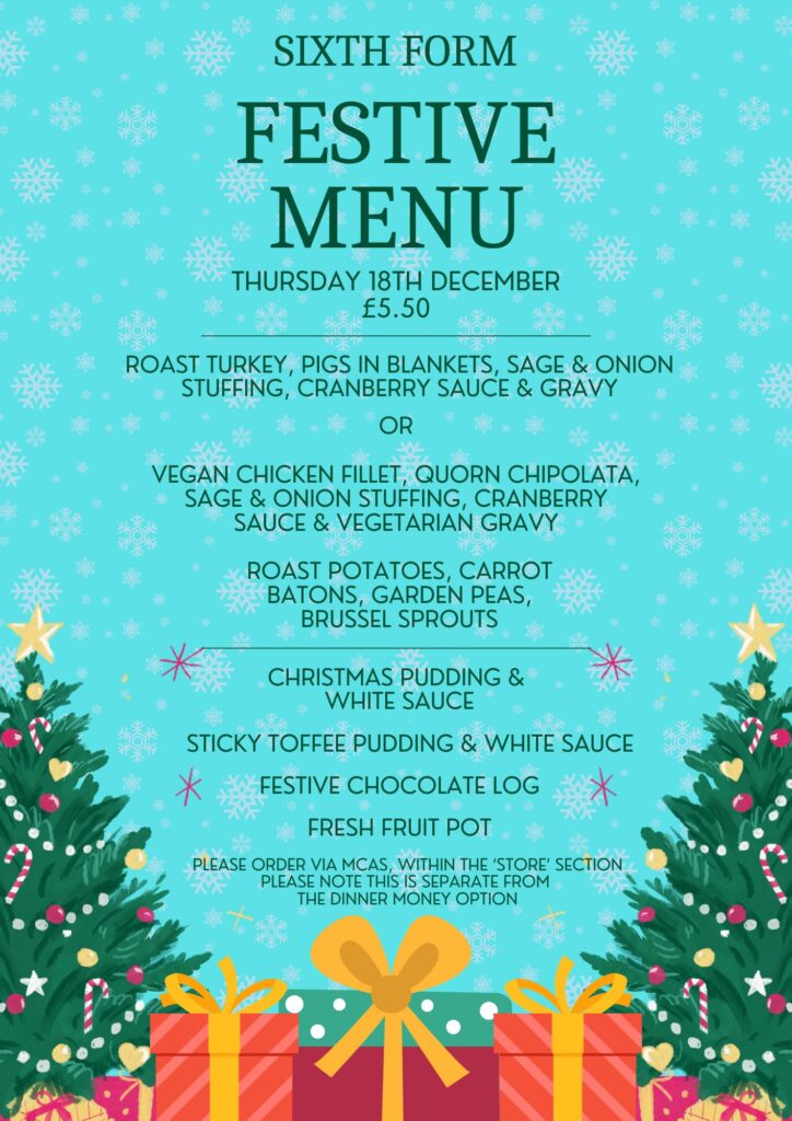 Please order and pay £5.50 via the MCAS app in the ‘Store’ section. Select ‘Christmas Lunch Options’ to choose your order. Please note this is separate from the usual dinner money option and must be used if you wish to have the Christmas lunch.