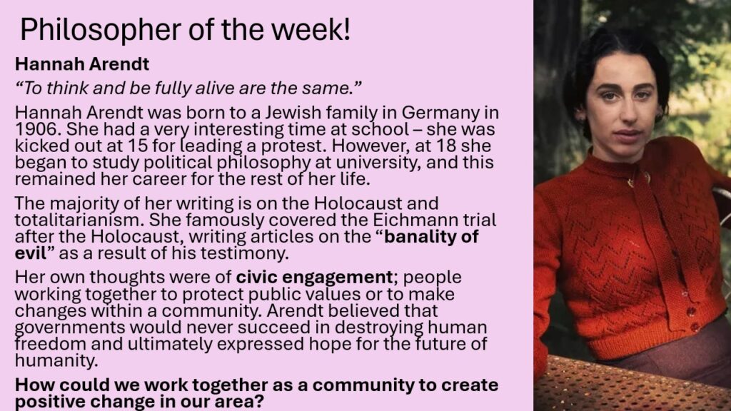 Philosopher of the week!6 January 2026News Philosopher of the week, Hannah Arendt.#Respect #Engage #Aspire