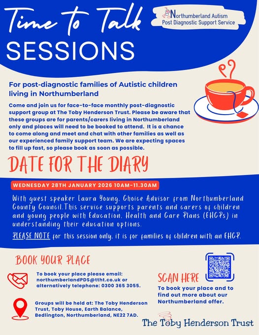 Time To Talk Session19 January 2026News, SEND Time To Talk Session – Wednesday 28th January, 10am – 11:30amFind out what other help and support you can get with The Toby Henderson Trust – www.ttht.co.uk