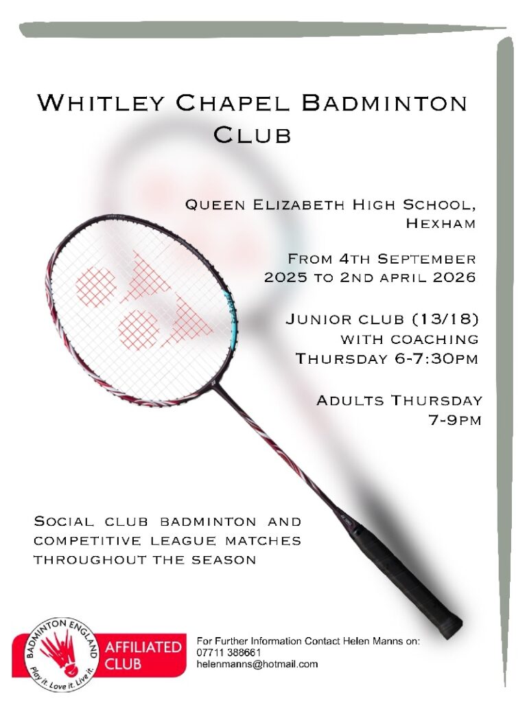 If any of our QEHS students or their families are interested in getting involved in the sport more regularly and wish to join Whitley Chapel Badminton Club, please see the attached advert, which provides details of the times and venue of club sessions. Any questions, don’t hesitate to contact the PE department or liaise directly with the club using the contact details provided on the advert.