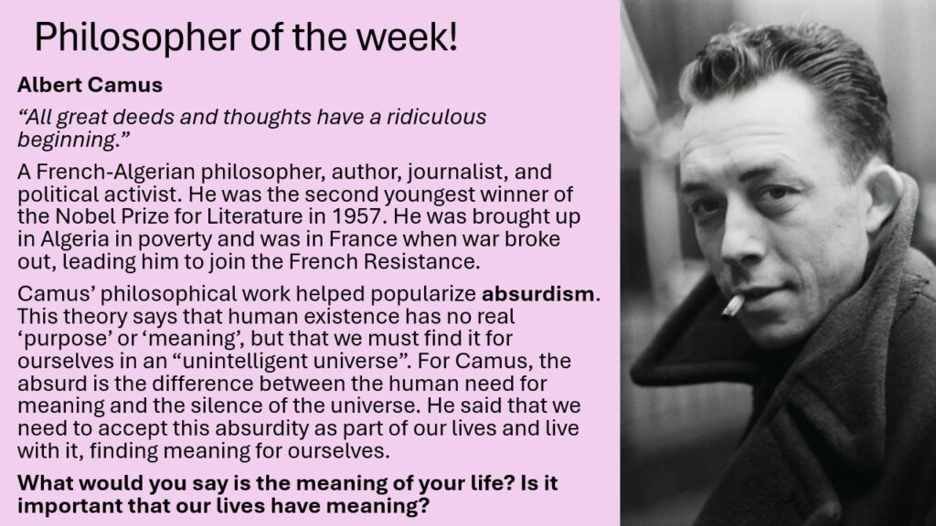 Philosopher of the week!27 January 2026News Philosopher of the week!Albert Camus#Respect #Engage #Aspire
