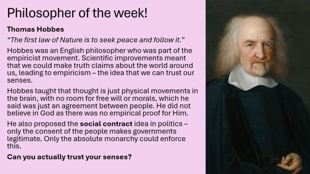 Philosopher of the week!10 March 2026News Philosopher of the week!Thomas HobbesRespect. Engage. Aspire
