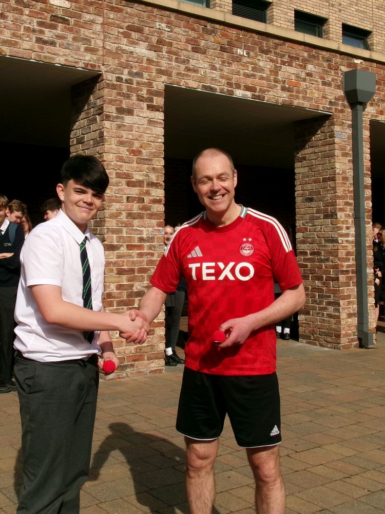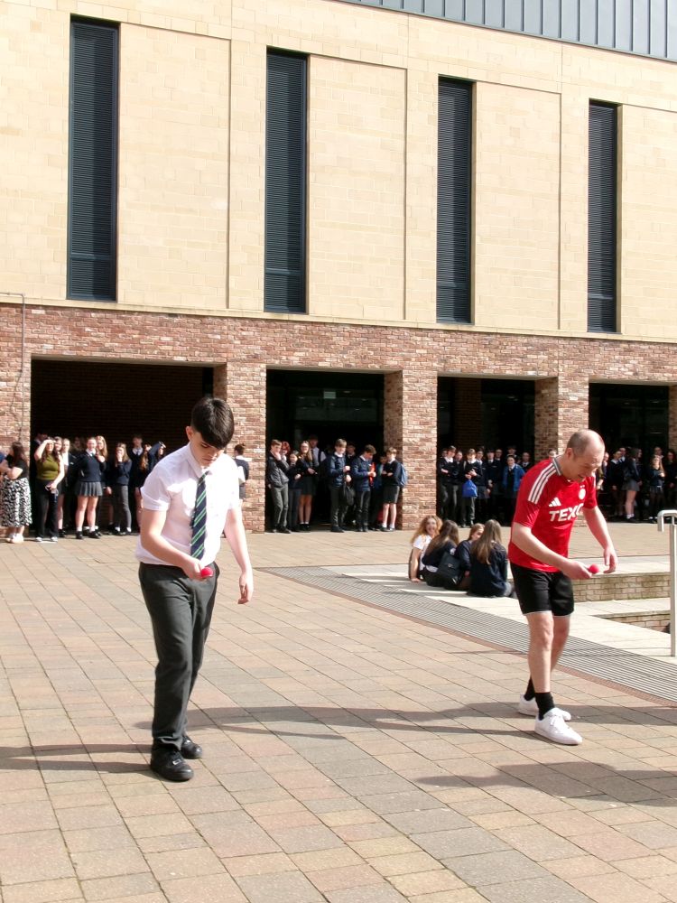 The second heat saw some of our bravest students step up to the plate to battle it out in a four‑person race. The winner, Jimmy C, immediately went on to face Mr Atkins in the final.