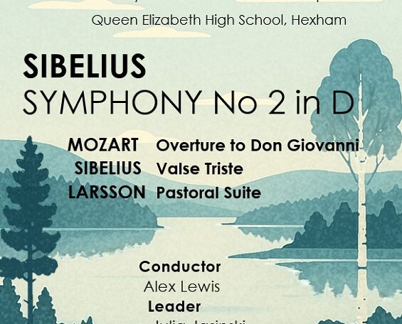 Tynedale Orchestra are playing a concert in the main QEHS school hall on Sunday 23rd November at 2.30 pm. The performance starts with Mozart’s fantastic Don Giovanni Overture and ends with Sibelius’s majestic 2nd Symphony. This is an excellent opportunity for our students to hear classical music. Tickets are only £1 for under 18s and students.