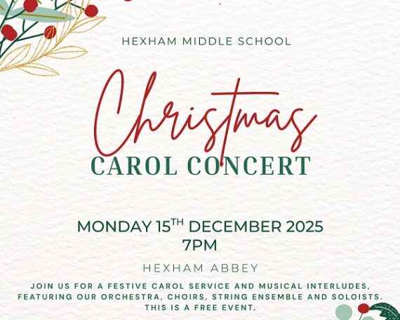 You are warmly invited to the HMS Christmas Carol Concert, which takes place at Hexham Abbey on Monday 15th December at 7pm. It features over a hundred students, including a large number of HMS as well as a significant number of QEHS students. #Repsect #Engage #Aspire