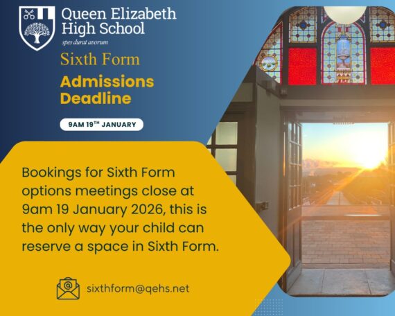 Tickets are now on sale for the QEHS Winter Concert on February 3rd. Brighten up the winter with a fantastic musical evening, including performances from Jazz Band, Show Choir, Wind Band, String Ensemble, Soul Band, Flute Ensemble, QEHS Choir and more! Tickets are £5/£4. Winter Concert Tickets (Ticket Tailor Website)